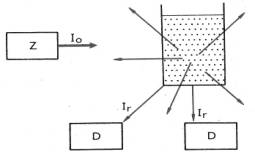 Rozptýlené světlo (Ir) vychází z roztoku všemi směry (tzv. Tyndalovo světlo) a měří se (D) pod úhlem, který je odlišný od směru dopadajícího záření.