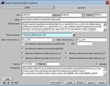péče, později byly doplněny další „události“, k nimž označení „klinická“