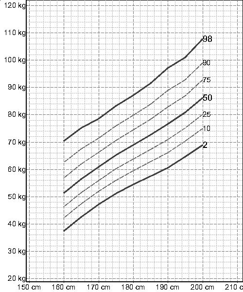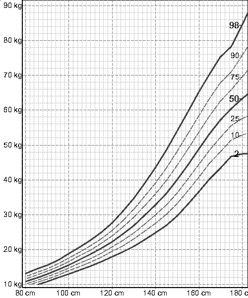 pod empirický desátý percentil hmotnosti k výšce je u postmenarcheální dívky