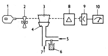 nasáván přes zmlžovač a zmlžovací komoru do plamene, kde dochází