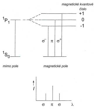 Obr. 3. Zeemanovo "normální" štěpení