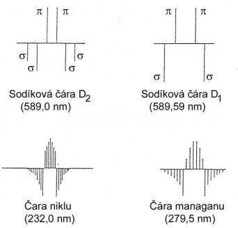 1, nastává v kolmém směru na magnetické pole. Jednoduchá spektrální linie se