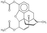 Heroin (diacetylmorfin, diamorfin, acetomorfin) - příklady obchodních názvů léků: Diagesil, Diaphin, aj.