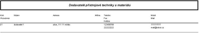 Tiskovou sestavu lze zobrazit na monitoru (volba Preview), vytisknout (volba Na tiskárnu). Je orientována na šířku. Třídění sestavy bude totožné s aktuálním tříděním seznamu dodavatelů. Další možností je údaje o dodavatelích uložit do excelové tabulky a z té si pak následně vytvořit tiskovou sestavu podle vašich požadavků (volba typu tisku "Do tabulky v Excelu).