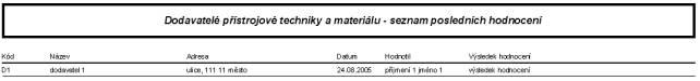 seznamu posledních hodnocení dodavatelů. Tiskovou sestavu lze zobrazit na