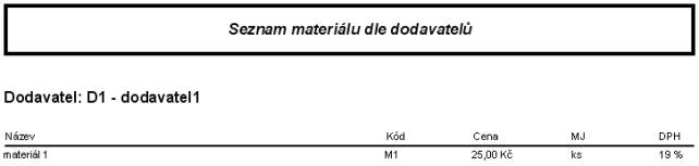 Ukázka části tiskové sestavy pro typ tisku "dle dodavatelů":