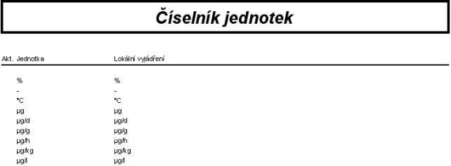 číselníku jednotek (kódy a názvy národní i lokální). Tiskovou sestavu lze