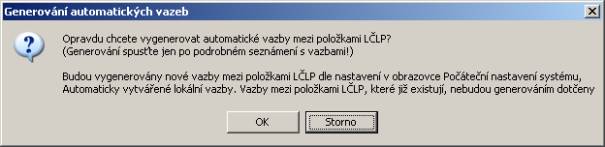 Po jejím aktivování se objeví dotaz, zda chcete opravdu vygenerovat automatické vazby mezi položkami LČLP.