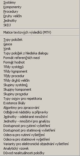 Dostupnost pro rutinní vyšetření - zobrazí dialog pro práci s číselníkem dostupností pro rutinní vyšetření