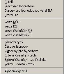 Verze NČLP - zobrazí dialog pro práci s číselníkem verzí NČLP