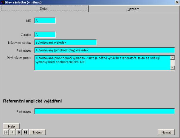 údaje v záložce Detail spravuje správce národního číselníku. Nemůžete editovat