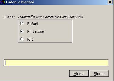 Po stisknutí tlačítka storno bude dialog Třídění a hledání ukončen bez změny pořadí a bez případného hledání dle hledaného řetězce.