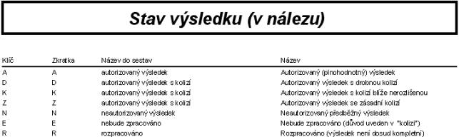Stav výsledku (v nálezu) |