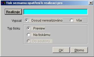Realizuje - tlačítko pro výběr pracovníka laboratoře, který opatření realizuje. Vybírá se ze seznamu pracovníků laboratoře.