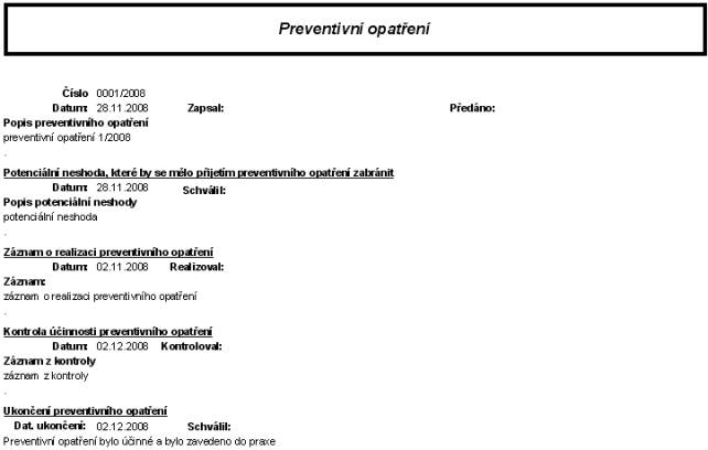 popisu PO (záložka "Popis preventivního opatření"). Tiskovou sestavu