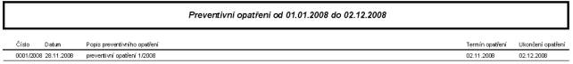 Pokud jsou zadány datumy od i do, budou zobrazeny pouze záznamy o preventivních opatřeních, která mají datum vytvoření popisu preventivního opatření v zadaném intervalu.