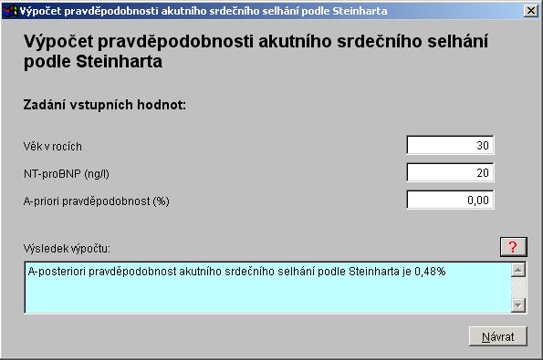 zobrazí komentář k pravděpodobnosti akutního srdečního selhání podle Steinharta.