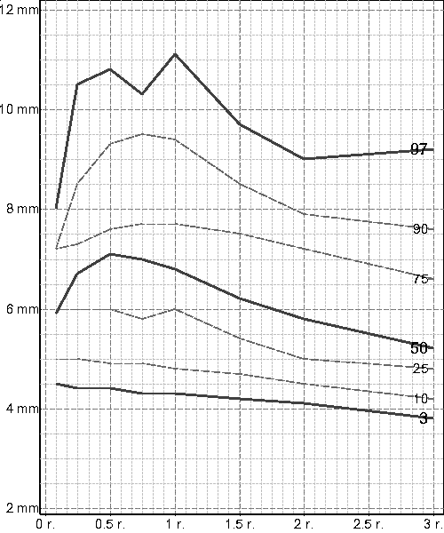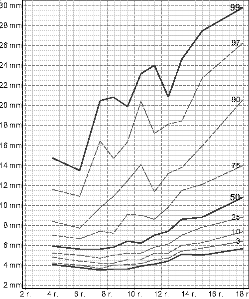subskapulární kožní řasy, chlapci, 3 - 18 r.