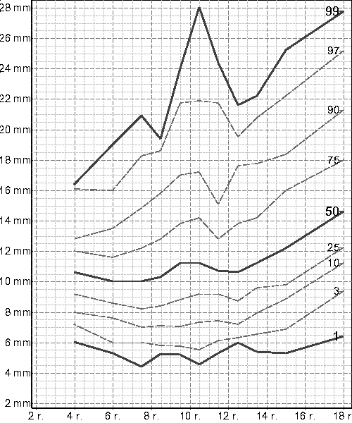 tricipitální kožní řasy, chlapci, 3 - 18 r.