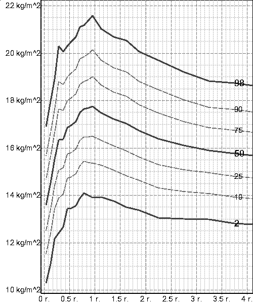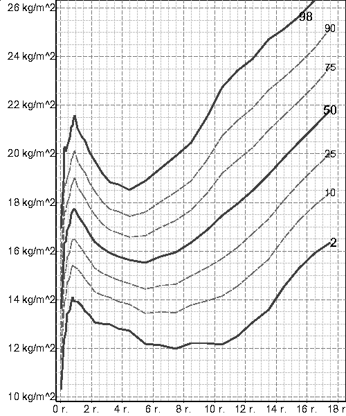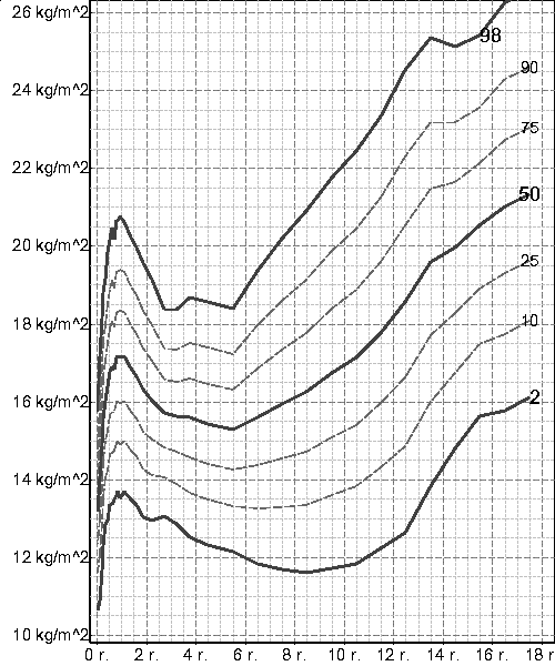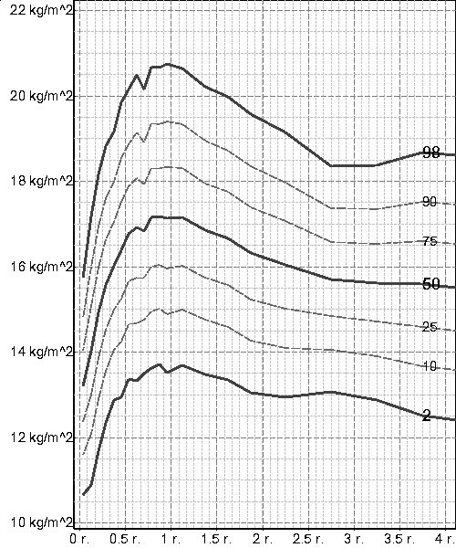 narození do ukončení růstu (viz grafy) se BMI velmi významně mění a stejně jako