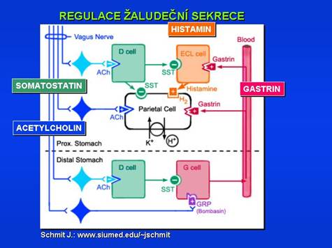 Gastrin je hormon polypeptidového charakteru (molekula je tvořena 17 aminokyselinami, Mr = 2100), který se vyskytuje ve třech formách. Základní molekula G-17 (little gastrin), G-34 (big gastrin) a G-13 (mini gastrin) zkrácený řetězec na 13 aminokyselin. Pentapeptid s C-terminální sekvencí gastrinu (beta-Ala-Trp-Met-Asp-Phe-NH2) - pentagastrin se používá ke stimulaci při vyšetření žaludeční acidity. Stanovení gastrinu je rozhodující pro diagnostiku Zollingerova-Ellisonova syndromu.