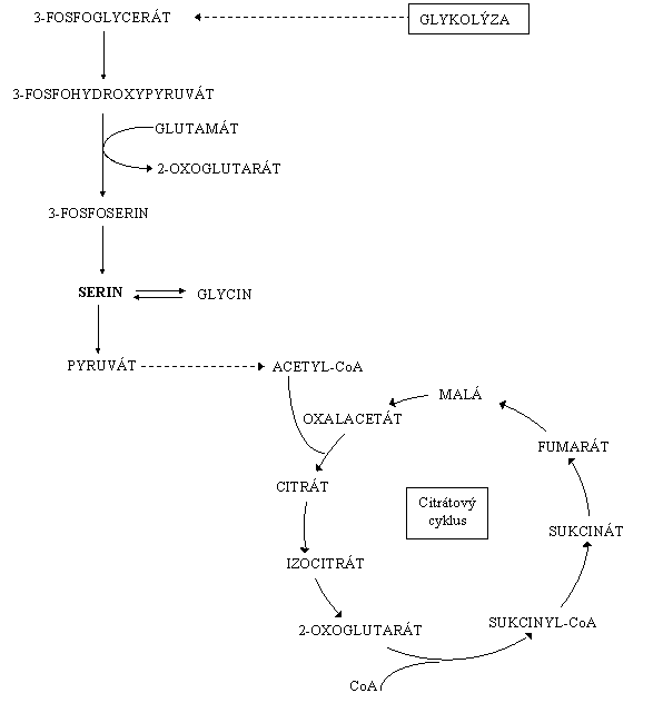 glukoplastické aminokyseliny. Odbourávání serinu probíhá jednoduchou přímou