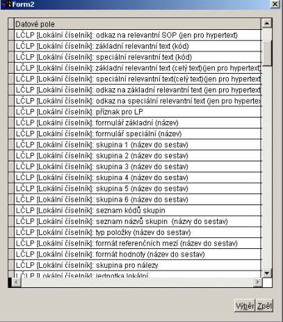 aktuálního formuláře (viz pole Osnova (1 - 3) Definice formulářů pro položky LČLP (technický