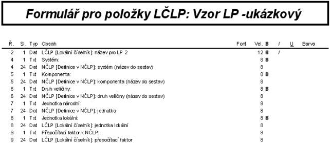 řádků (viz Definice formulářů pro položky LČLP (technický