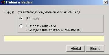 Kliknutím na hlavičku sloupce lze seznam setřídit podle příjmení, jména.