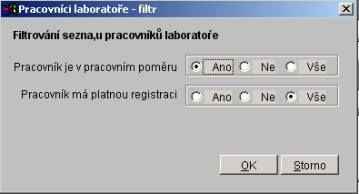• Všichni pracovníci laboratoře - do sestavy se dostanou všichni pracovníci laboratoře (bez ohledu na datum odchodu z laboratoře a datum nástupu do laboratoře)