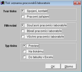 této položce se váže tisková sestava "tisk seznamu pracovníků laboratoře,