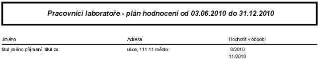 uvedeno jméno, adresa a období, ve kterém měl být pracovník hodnocen. Pokud