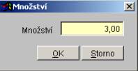 do kterého lze zadat množství. Tlačítkem OK hodnotu potvrdíte, tlačítkem Storno okno uzavřete bez změny množství. Po změně množství bude přepočítána hodnota "Předpokládaná cena celkem.