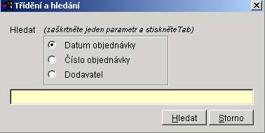 Po stisknutí tlačítka "Storno" bude dialog Třídění a hledání ukončen bez změny pořadí a bez případného hledání dle hledaného řetězce.