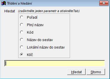 Po stisknutí tlačítka storno bude dialog Třídění a hledání ukončen bez změny pořadí a bez případného hledání dle hledaného řetězce.