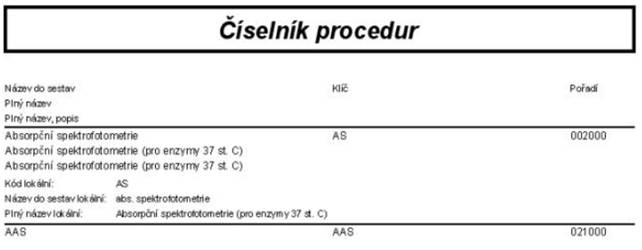 Klíč - jednoznačná identifikace pro systém SLP, datový standard a spolupracující LIS a NIS. Klíč procedury je neměnný.