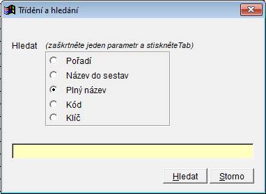 Po stisknutí tlačítka storno bude dialog Třídění a hledání ukončen bez změny pořadí a bez případného hledání dle hledaného řetězce.