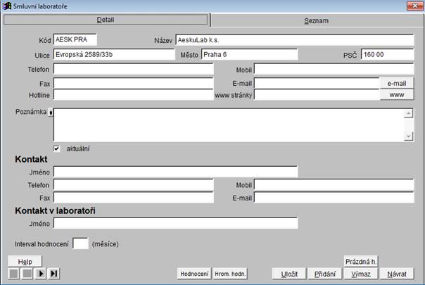pro hodnocení smluvní laboratoře je identický s dialogem pro hodnocení
