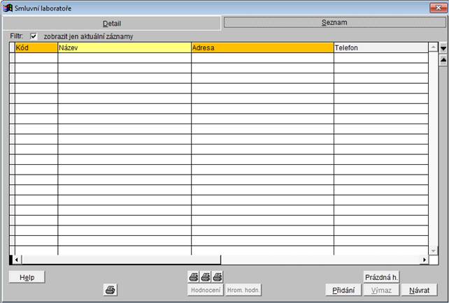 pouze aktuální smluvní laboratoře (viz filtrování seznamu smluvních