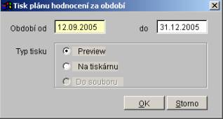 "Hodnocení") - zobrazí dialog pro tisk plánu hodnocení