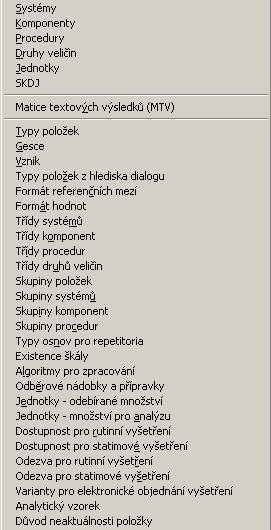 Dostupnost pro rutinní vyšetření - zobrazí dialog pro práci s číselníkem dostupností pro rutinní vyšetření