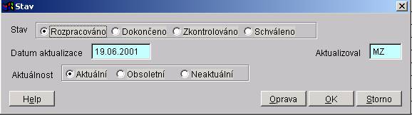 Oprava - tlačítko, které zpřístupní pro editaci všechna pole dialogu. Protože se jedná o nestandardní operaci, objeví se nejprve dotaz