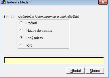 Po stisknutí tlačítka storno bude dialog Třídění a hledání ukončen bez změny pořadí a bez případného hledání dle hledaného řetězce.