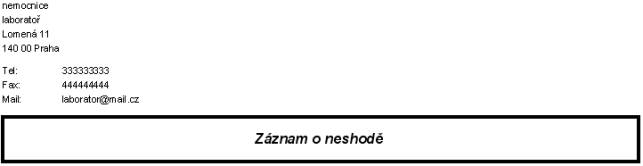 na začátku tiskové sestavy jsou vloženy indentifikační údaje z agendy "Základní údaje o laboratoři, nemocnici".