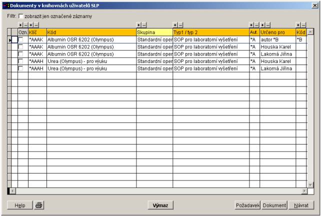 aktuální dokument" je dialog přístupný i pro autory dokumentů (přístupová práva SLD, SLD). Jsou zobrazeny pouze záznamy