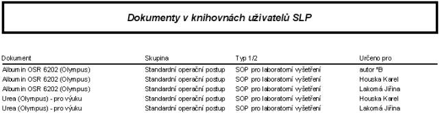dokumentů v knihovnách uživatelů SLP. Tiskovou sestavu lze zobrazit na monitoru