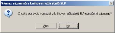 Výmaz - výmaz všech označených dokumentů z knihoven uživatelů SLP. Po kliknutí na tlačítko se objeví dotaz