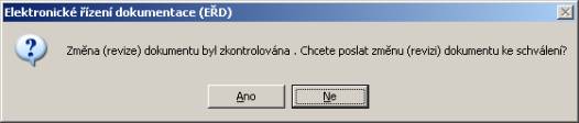 Po odpovědi "Ano" se objeví dialog pro odeslání změny (revize) dokumentu ke schválení prostřednictvím elektronického řízení dokumentace.