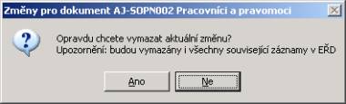 Po odpovědi "Ano" bude aktuální záznam o změně v dokumentu vymazán. Budou vymazány i všechny související záznamy v EŘD.