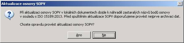 Aktualizace osnovy SOPV - toto tlačítko slouží ke spuštění aktualizace osnov SOPV ve vašich dokumentech (s výjimkou neaktuálních a archivovaných dokumentů). Po stisku tlačítka se objeví dotaz: